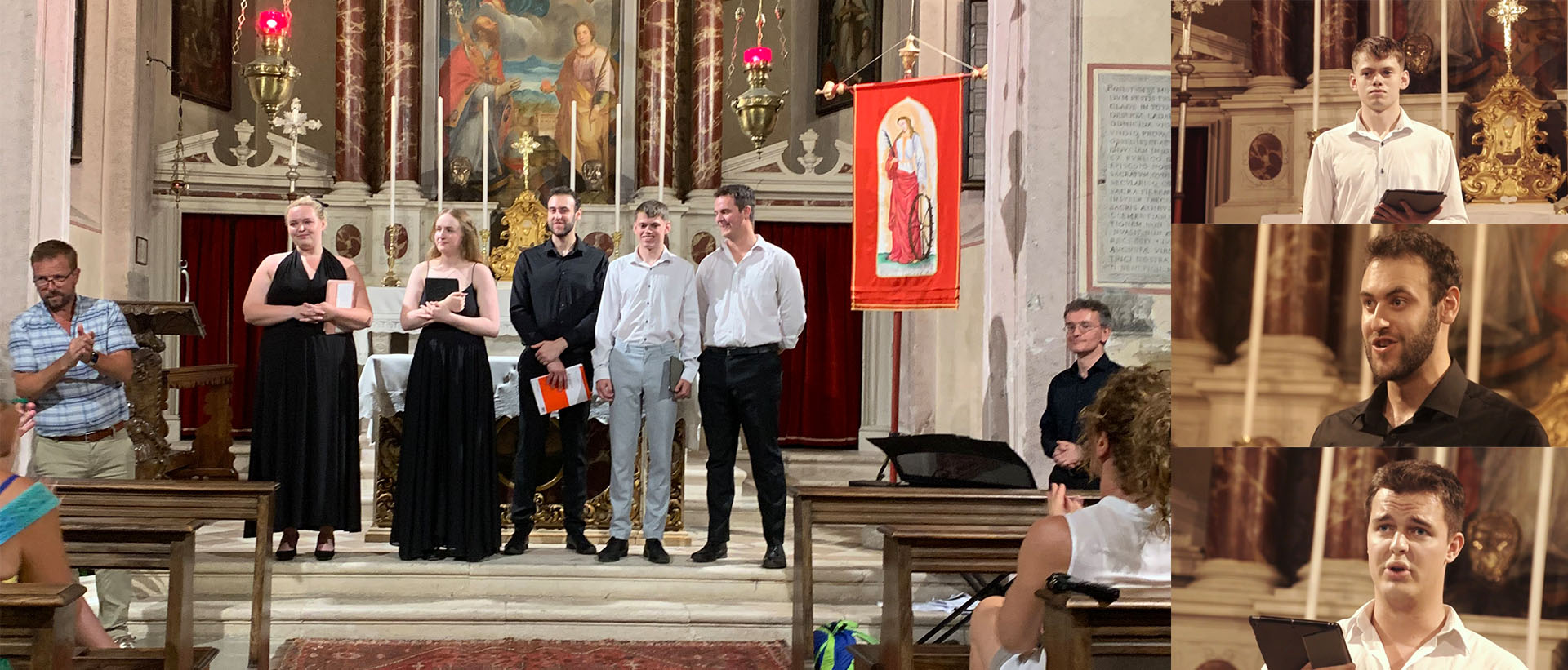 I Tredici and L’Orchestra Accademia di Venezia - Le Quattro Stagioni and Four New Seasons In our 2023 season, our four MusicaLink scholars were also given the opportunity to sing with I Tredici in the Italian première of Paul Carr’s “Four New Seasons” in the spectacular Scuola grande di San Giovanni Evangelista in Venice on 27th August with the “Orchestra Accademia di Venezia” alongside the original “Quattro Stagioni” by Vivaldi.